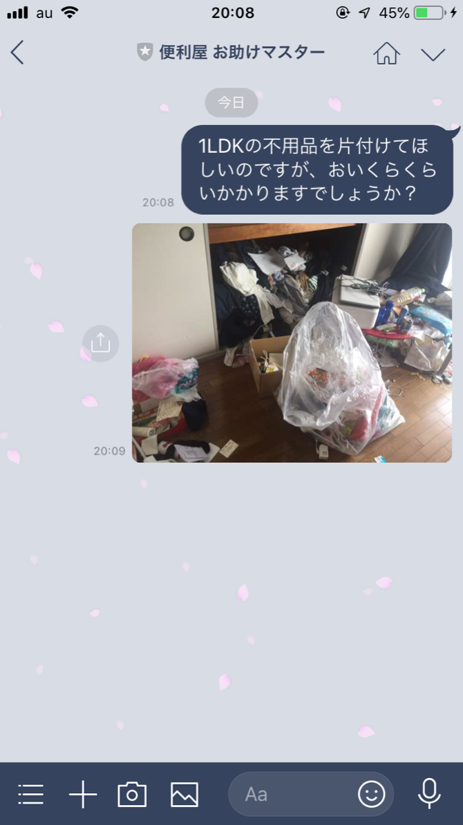 便利屋お助けマスター埼玉久喜店ではお気軽にご相談いただけるようにラインからのお問い合わせも受け付けております。「電話はちょっと…」という場合でもお気軽にご相談ください。また、写真を添付していただくことで概算のお見積を提出することも可能です。