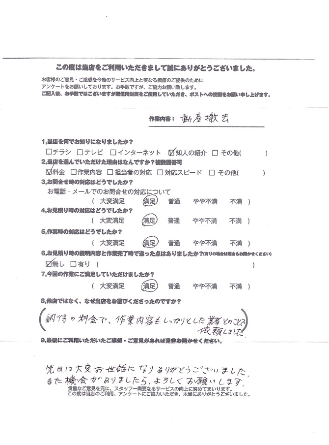 | 害虫駆除 | 模様替え | 物置撤去 | 屋根修理 |